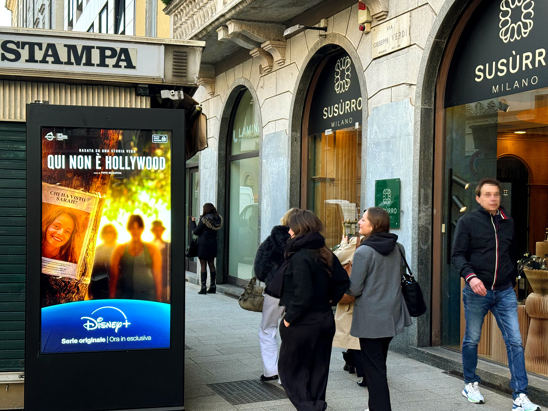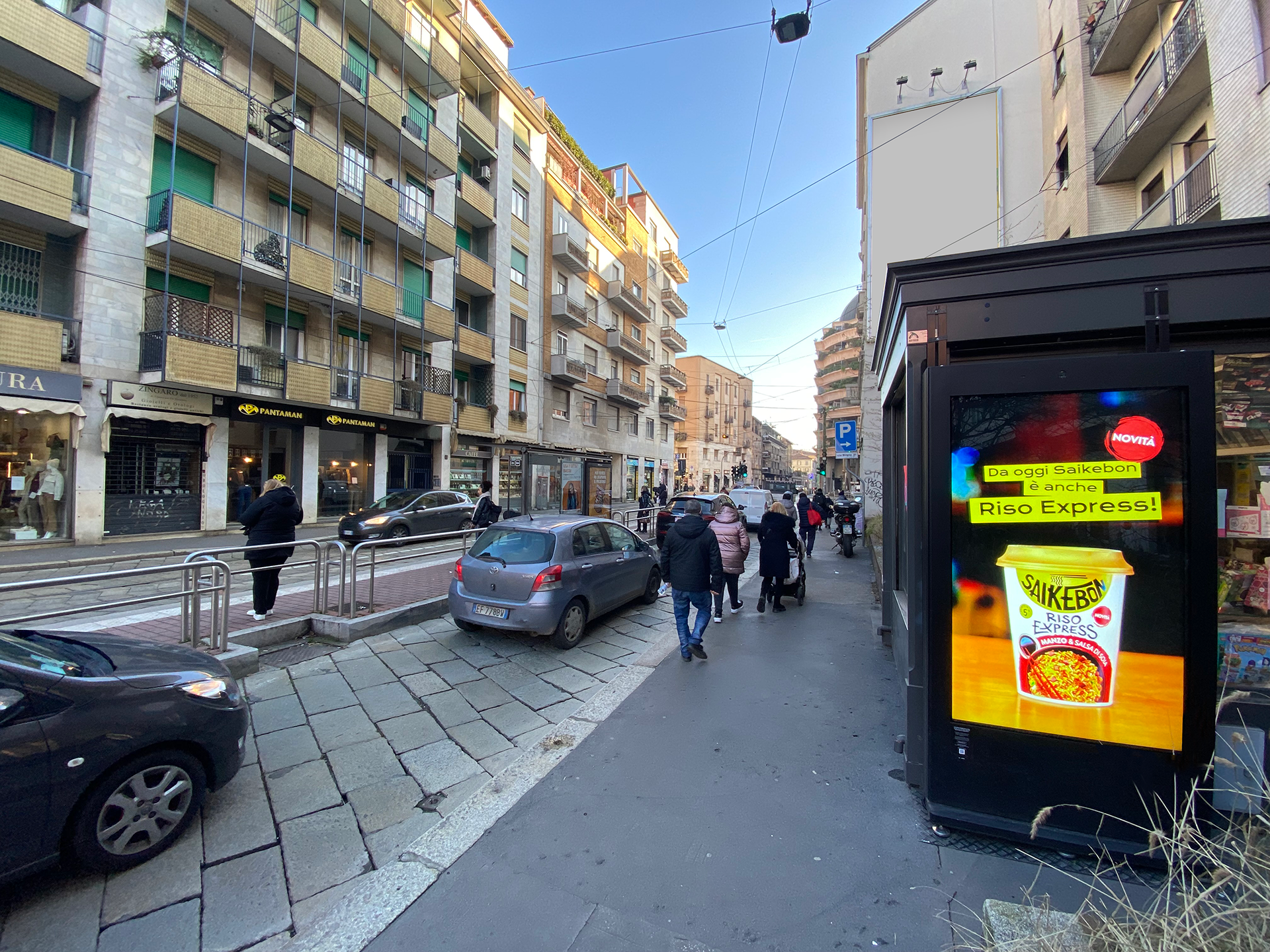130 schermi LCD da 75″ e 65’’ collocati all’esterno di 112 edicole di Milano, 61 da 75’’ e 69 da 65’’ (revamping in corso, 50% degli impianti già sostituiti), visibili in pieno sole (4.000 nit), multi-touch, antiriflesso e antivandalici.